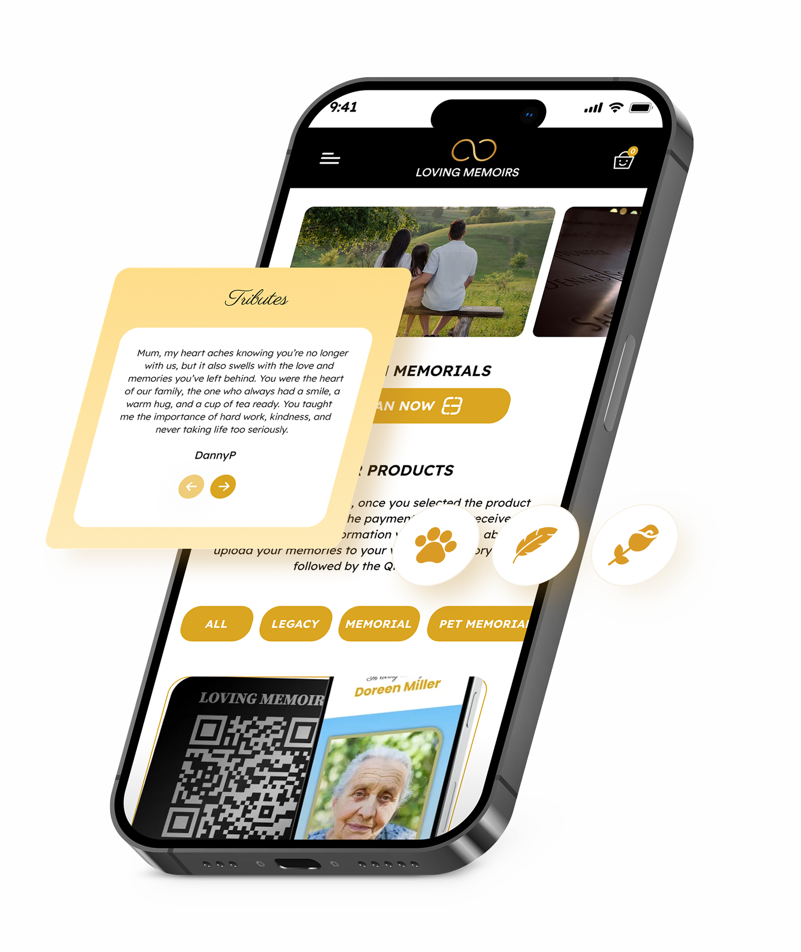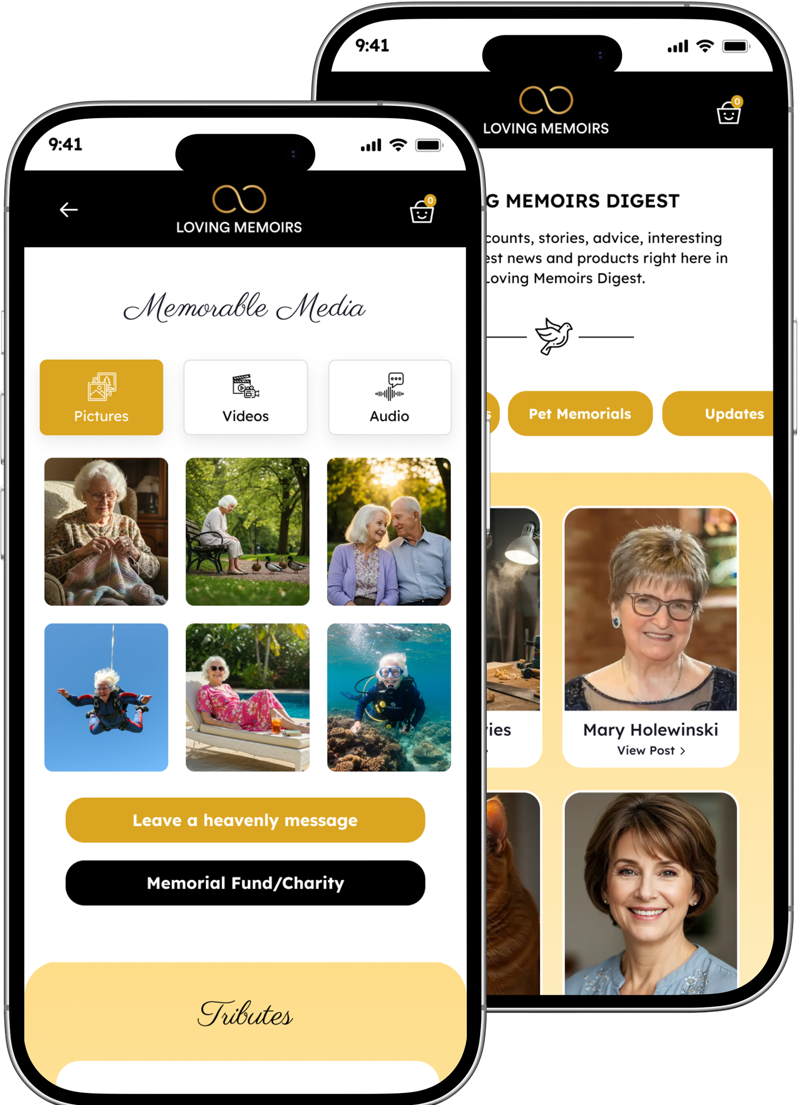 Preserve and share cherished memories, light digital candles, and stay connected — all through the Loving Memoirs app.